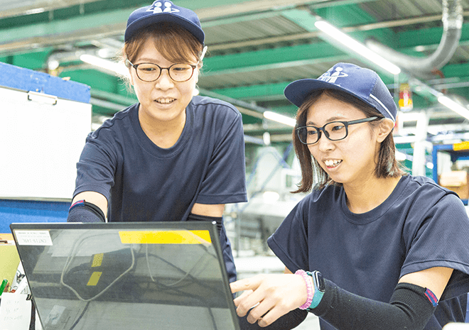 入社して10年ほど経ったころから、班長を任されています。仕事は、本社2階工場の部品組付工程がスムーズに進むための管理。毎日もう1人の班長と打ち合わせて、その日に製造する予定の製品のうち、どれをどの作業者に担当してもらうかを計画し、本人に指示します。お客様の都合に応じて、「この車種の分を、この時間までに」といった順番が決まってきますが、作業者によってスキルの差があり、できる作業が違います。「この時間にこの製品をつくりたいけど、できる人がいない」ということも。どうしようもないときは自分が応援に入るなど、臨機応変に動きます。