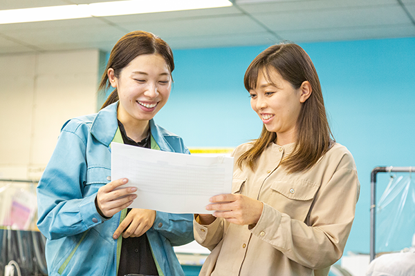 「社員を大切に」という考えは、経営者はもちろん、役職者にも浸透しています。「こうすれば製造効率が上がるのでは?」という改善提案の意見に、上司がきちんと耳を傾けたり、「結婚後も時短で働きたい」という声に応え、制度を増強させたりしているのが、その証拠。不満も改善の種だから、遠慮なく発信してOK。社内のDX化も進行中なので、上司や社長に伝えたいことがあれば、以前に増してすぐ伝えられるようになっています。